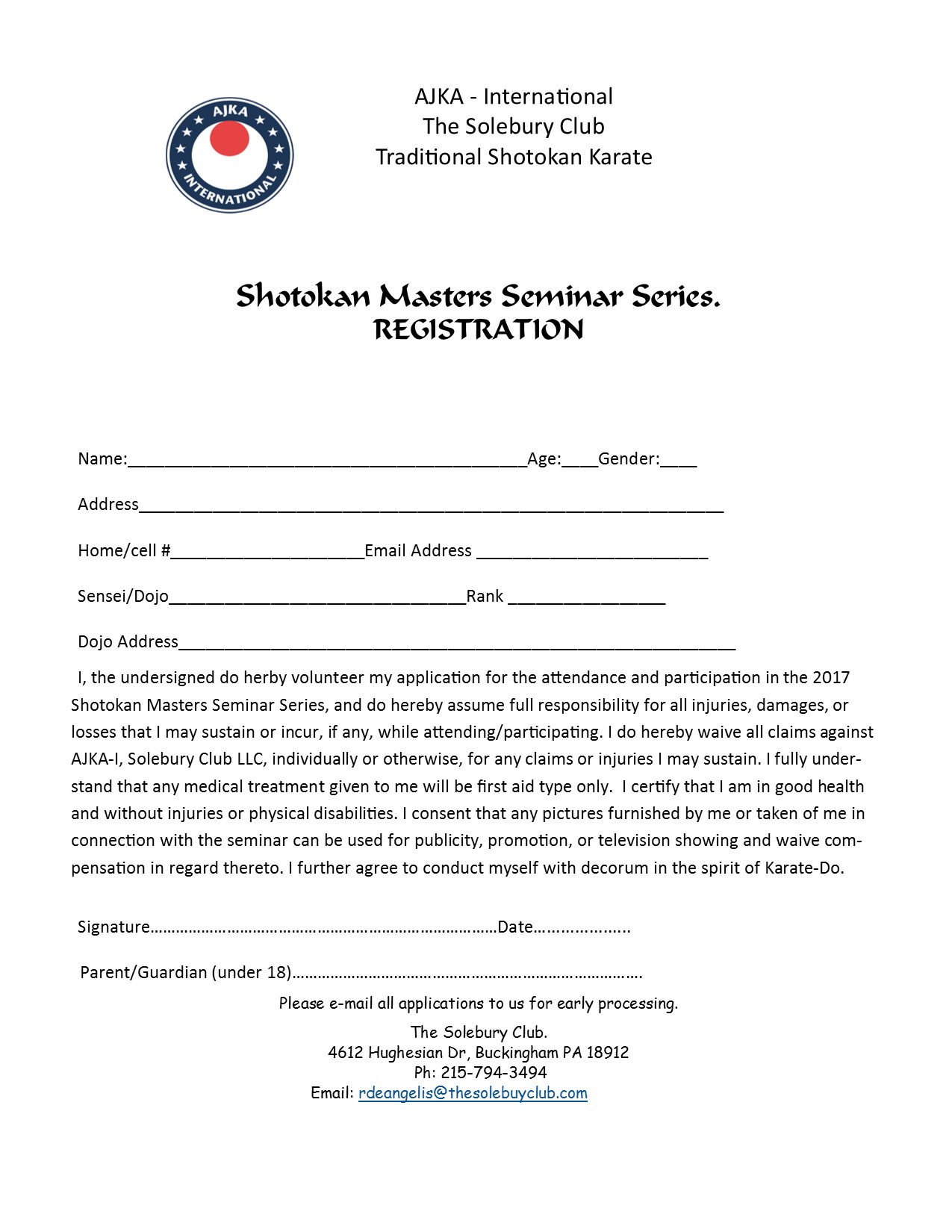 Wealth of knowledge and experience from top instructor known worldwide will be presented in this seminar at The Solebury Club. Please fill the form attached and submit as soon as possible.