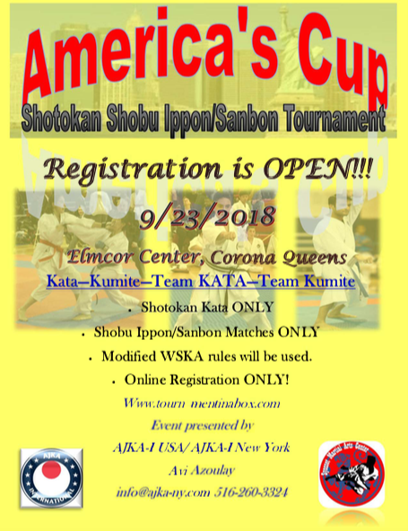 It is with great pleasure and pride that we invite you and your students to the 2018 America’s Cup Invitational Shotokan Championships, sponsored by the AJKA-I of New York And sanctioned by AJKA-I USA, to be held on Sunday, September 23, 2018.